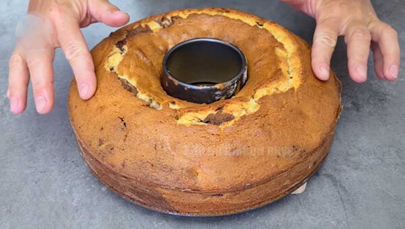 La mine a durat 55 de minute, checul trebuie să se răcească 5-7 minute în formă, apoi să fie răsturnat pe un grătar și lăsat să se răcească complet, eventual pudrat cu zahăr. La coacere, un chec adevărat are întotdeauna crăpături frumoase!