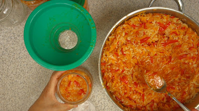 Umplerea și pasterizarea salatei cu orez și legume: