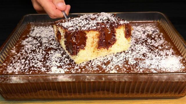 Dacă aveți poftă de ceva cu adevărat dulce și irezistibil, acest tort suculent cu cremă de ciocolată, glazură și nucă de cocos este alegerea perfectă! Combinația dintre un aluat fin și moale, o umplutură bogată de ciocolată și presărarea cu cocos se topește pur și simplu în gură. Iar partea cea mai bună este că prepararea lui este simplă și rapidă, așa că vă puteți bucura de această plăcere dulce în doar câteva momente.